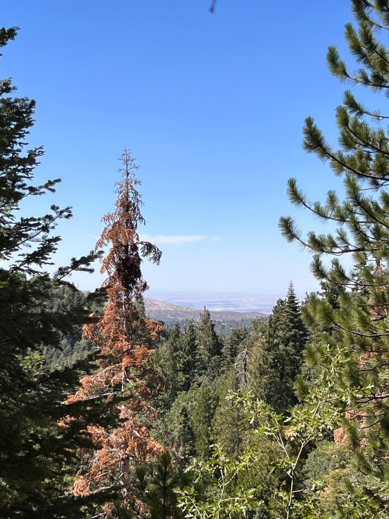 Much of the information focused on fire and its impact to the forest. At several places, there was strong evidence of trees surviving fires due to the natural thickness of their wood or their ability to continue to grow, but through a new branch. Fires also help release the seeds from the cones and thus, they are able to insure a legacy through their progeny.