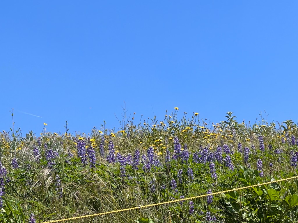 On April 1, our local hike was at the Purple Sage Trail at the Puente Hills Reserve. While the purple sage was not quite in bloom, the lupines were putting on quite a display. This suburban-urban hike is a quick local trip but I had forgotten something that was persistent in all the local area blooms: invasive mustard. Here, the mustard had grown taller than a person and grew into something fence-like, at the edges, and blocking views of the native preserved areas. From afar, you can see masses of lupine. At one spot, I came close to a hill and just pointed my camera upward. It would have been a great day for a drone. It felt good to see that our local area experienced a good bloom.