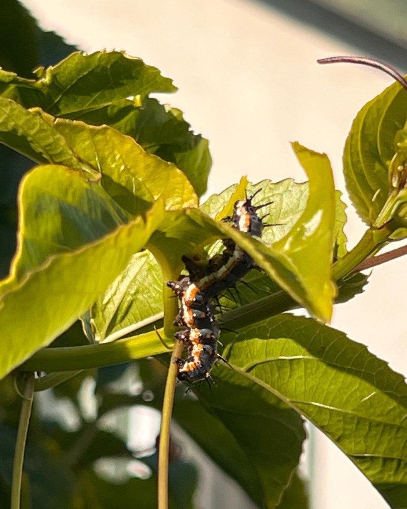 I planted a passion fruit because I enjoy the look of the flowers. Last year, I saw numerous gulf frittery butterfly caterpillars on my passion fruit plant. I spotted several cocoons and numerous butterflies which I can only suppose they emerged from the cocoons hanging from my arch.