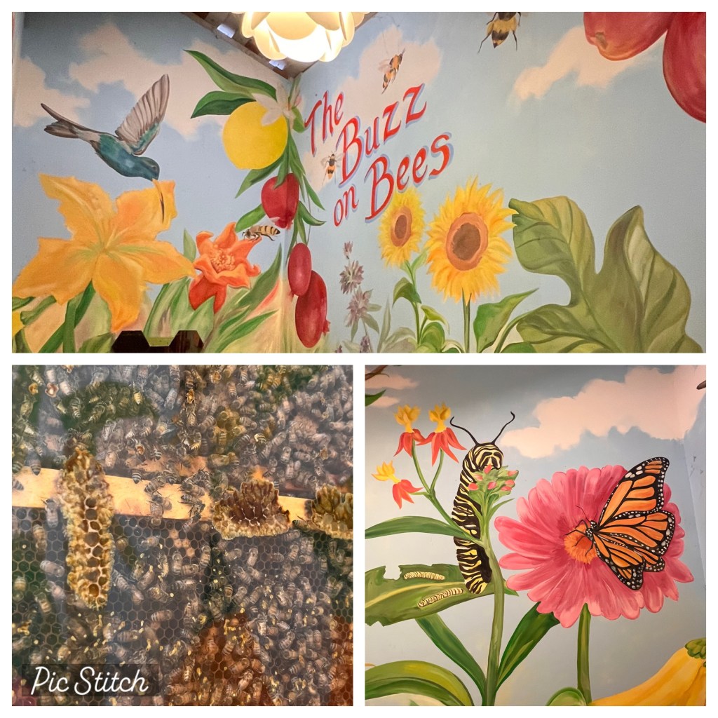 The museum discusses some elements of farming such as the vital bees that aide with pollination. The have a beautiful mural of bees, flowers, and the importance of pollination and a live colony of bees under glass for observation.