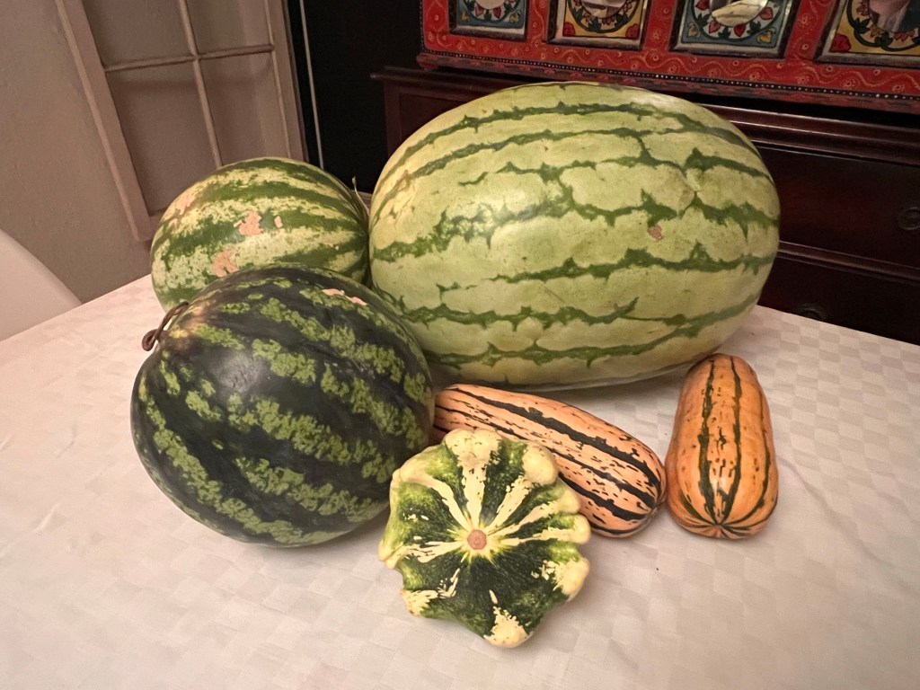 The second event was one of the final events of the expo. On the third and final day, there was a sale on all the squash from the tower and items in the display room. Because I enjoyed the watermelon tasting, I wanted to be sure I snagged a few watermelon and some of the smaller squash that I wanted to try. I only selected what I was realistically able to carry and my husband snagged a larger 20 pound watermelon. This event was also very entertaining with people scurrying back and forth grabbing what they could, others being calculating in their choices, and the methods of transport from wheelbarrows to canvas bags to bundling with jackets. All funds raised during the event goes to school gardens.
