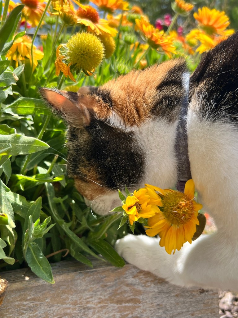 My gardening assistants, my cats, helped catch several grasshoppers but it was too late for one of my carrots. The entire carrot crop was decimated by grasshoppers. Luckily, I had planted one variety in one pot so the area affected was secluded to one type of carrot while the other two in the trial was safe and growing well.