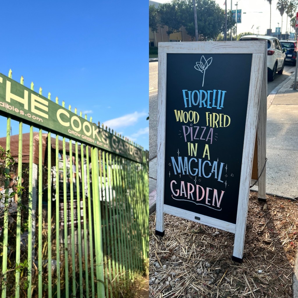 The pizza element is from a restaurant called Fiorelli Pizza. They serve authentic Sicillian thin crust pizza baked fresh from an oven all in the garden at The Cook’s Garden.