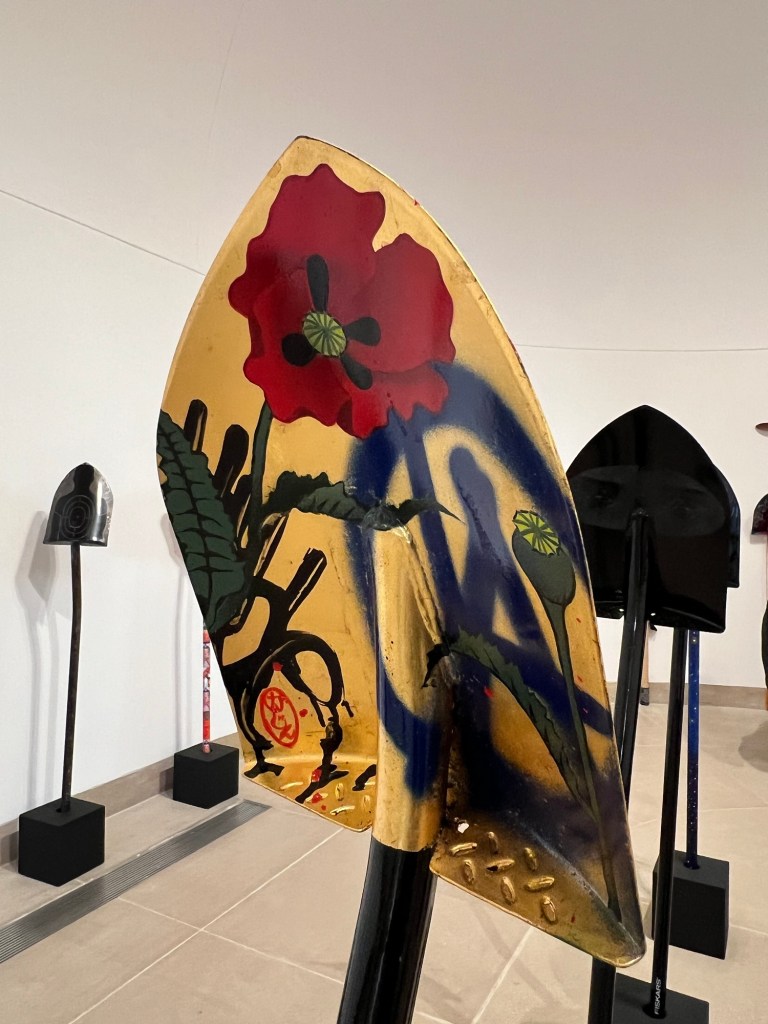Finley also has an accompanying exhibit with shovels decorated by various artists.