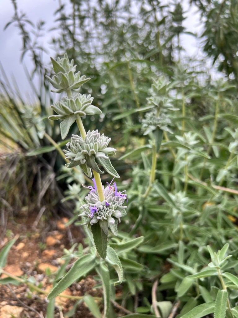 passing blooming shrubs of native sage and verbena.