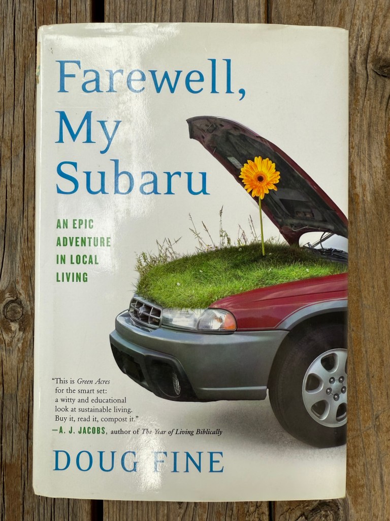 I’ve been in a reading funk, feeling unmotivated and saw “Farewell, My Subaru: An Epic Adventure in Local Living” by Doug Fine, when I was cleaning up my husband’s stash of books. He reads books about cars and this was purchased as one of those car books but when I looked at the subtitle and summary, I realized it was a book on homestead living. While I don’t have the acreage, I view my garden as a type of homestead. Homestead living is definitely a state of mind and I wanted to read his experiences.