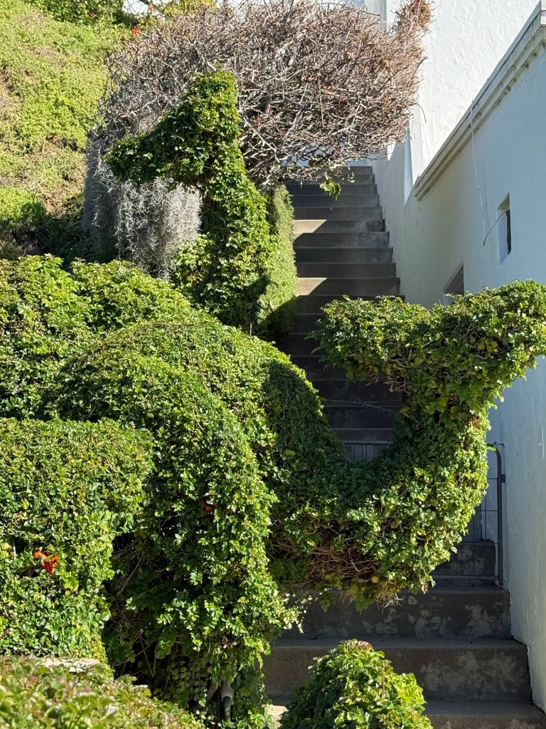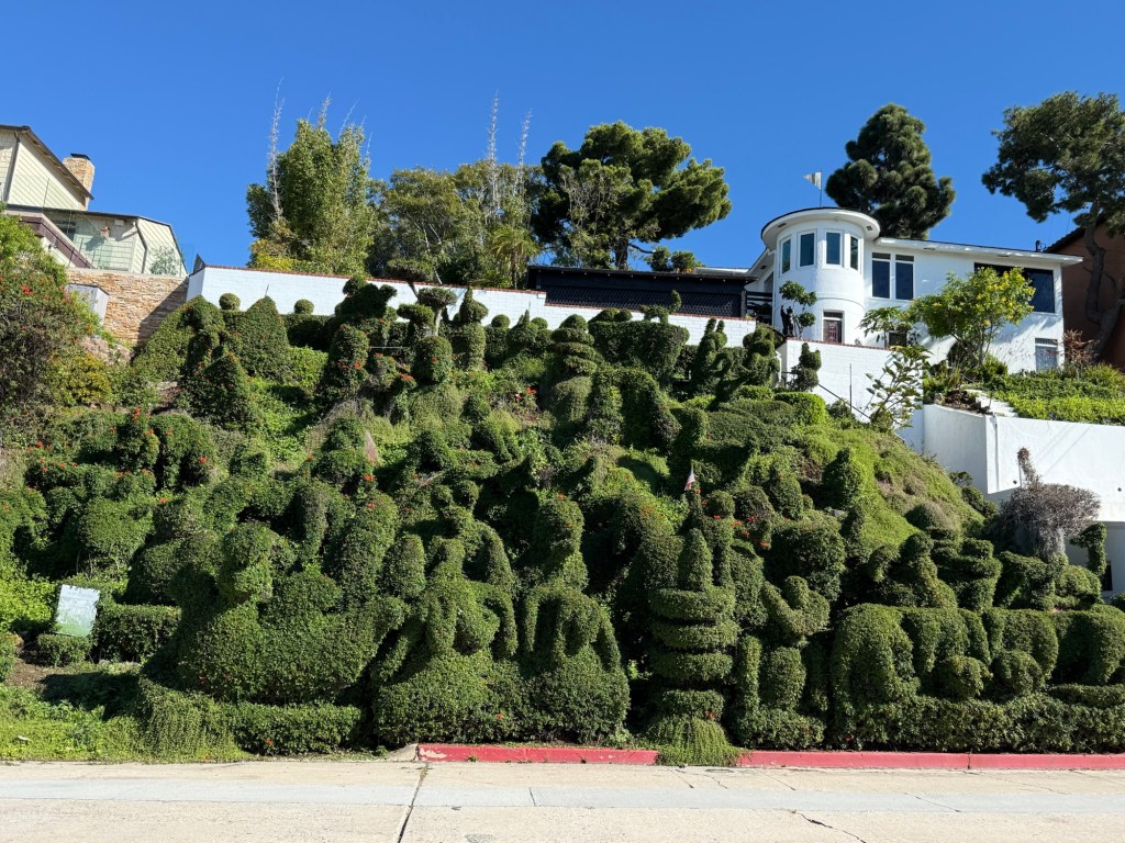 Harper’s Topiary Garden in San Diego is an example of what a homeowner can do with their front yard. In this situation, the house is situated on a hill and their front yard is on a steep incline.