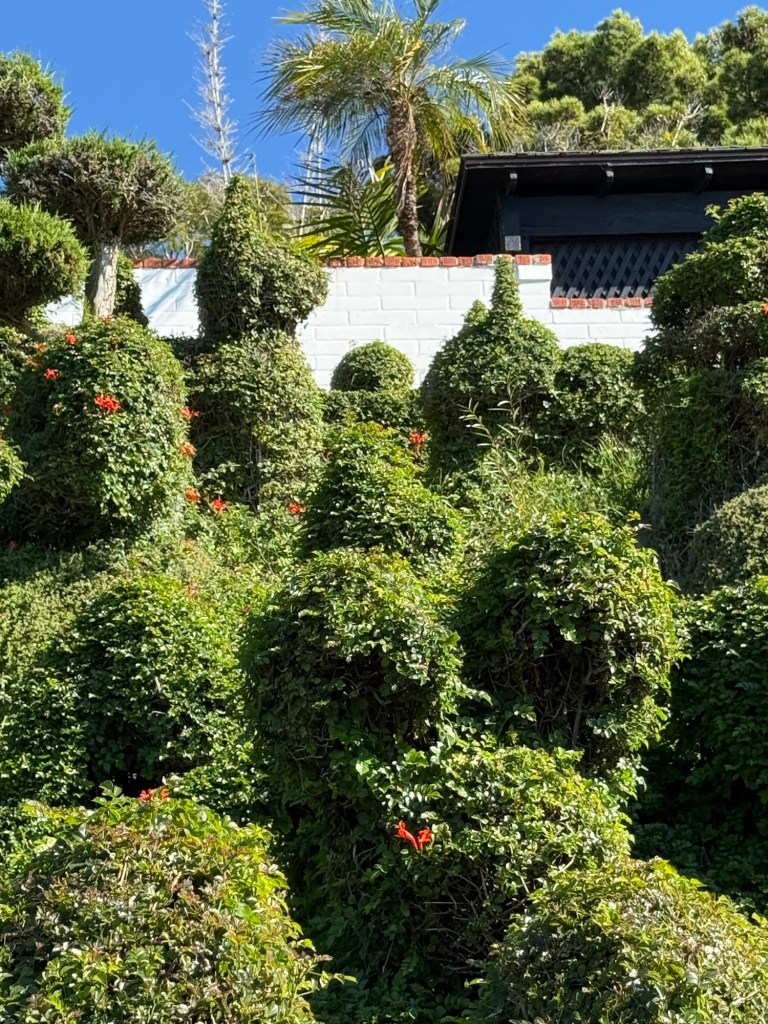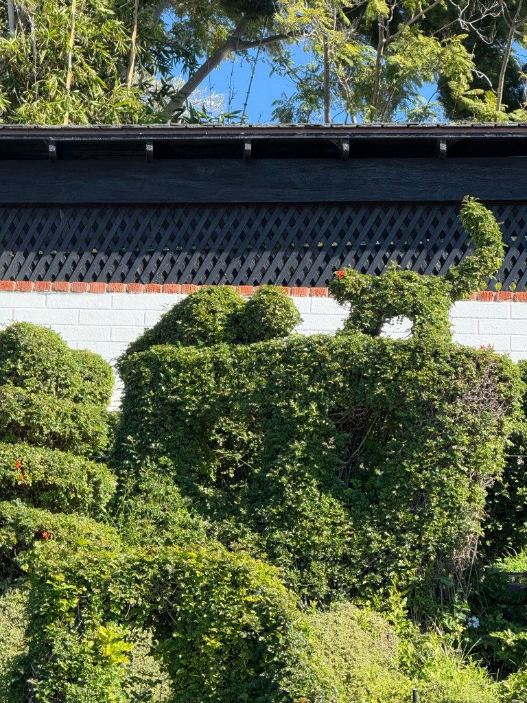 The result is a reflection of the owner’s aesthetics and personality. Shapes are often whimsical and humorous. Shapes include animals like elephants, whales, rabbits, cats, dogs, frogs, and rooster. I saw several shapes of humans and forms such as a spiral. I swore I saw butts and perhaps even instances of being mooned.