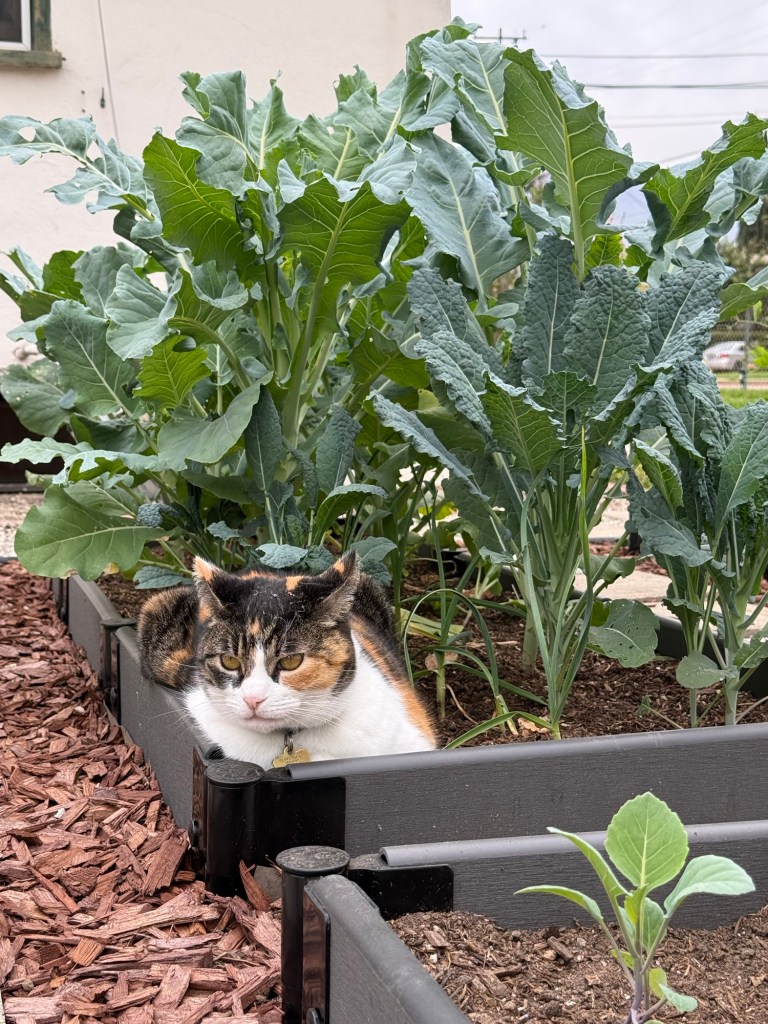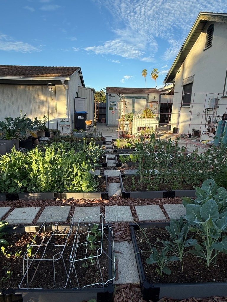 I looked forward to the garden change and putting my ideas into motion but emotionally, I felt distant from it all. I was proud of the process in removing everything from layers of mulch to layers of soil that I saved in trash barrels and redistributed when the raised beds were made. I was proud that I tried very hard to save my plants before they didn’t make it. I missed the surprises and the non-linear form of my previous garden design. And to make things worst, a month after I planted vegetable seedlings, peacocks in the neighborhood came and pecked at my plants and some did not survive.